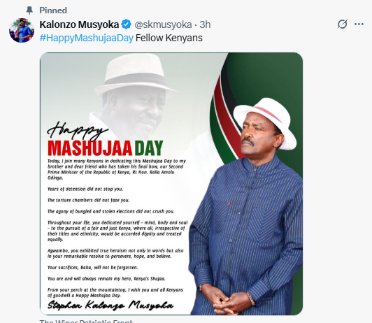 He concluded by wishing Kenyans a meaningful Mashujaa Day, framing the occasion as both a celebration of heroes and a tribute to Raila’s enduring legacy.