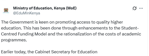 “The Ministry of Education wishes to reassure all Kenyans, especially students, parents, guardians, and learning institutions, of the government’s strong and ongoing commitment to supporting access to higher education,” the statement read.