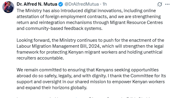 “We remain committed to ensuring that Kenyans seeking opportunities abroad do so safely, legally, and with dignity,” he added.