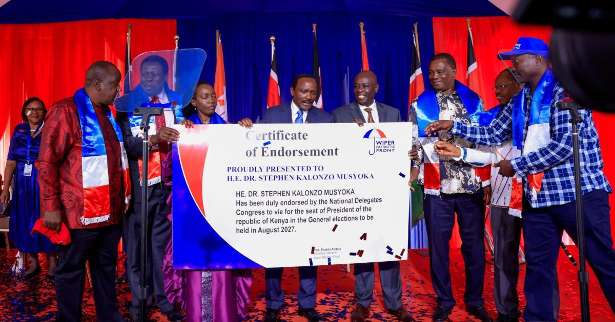 The Wiper Patriotic Front has officially endorsed its leader, Kalonzo Musyoka, as the party’s presidential flagbearer for the 2027 General Elections.