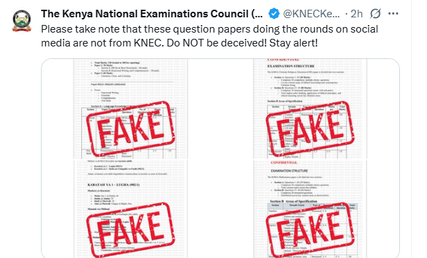 The Kenya National Examinations Council (KNEC) has raised a public alert regarding fake exam papers that are currently circulating on social media.